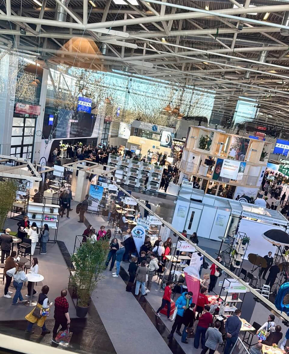 Ebenso der mehrstöckige Stand vom Brillenglashersteller @ZEISS mit seinem Schweizer Team vor Ort, die u.a. neue Zukunftsprojekte wie beispielsweise das Recycling von Brillengläsern und die Elektrochromie vorstellten, d.h. eine Brillenglastönung auf Knopfdruck.